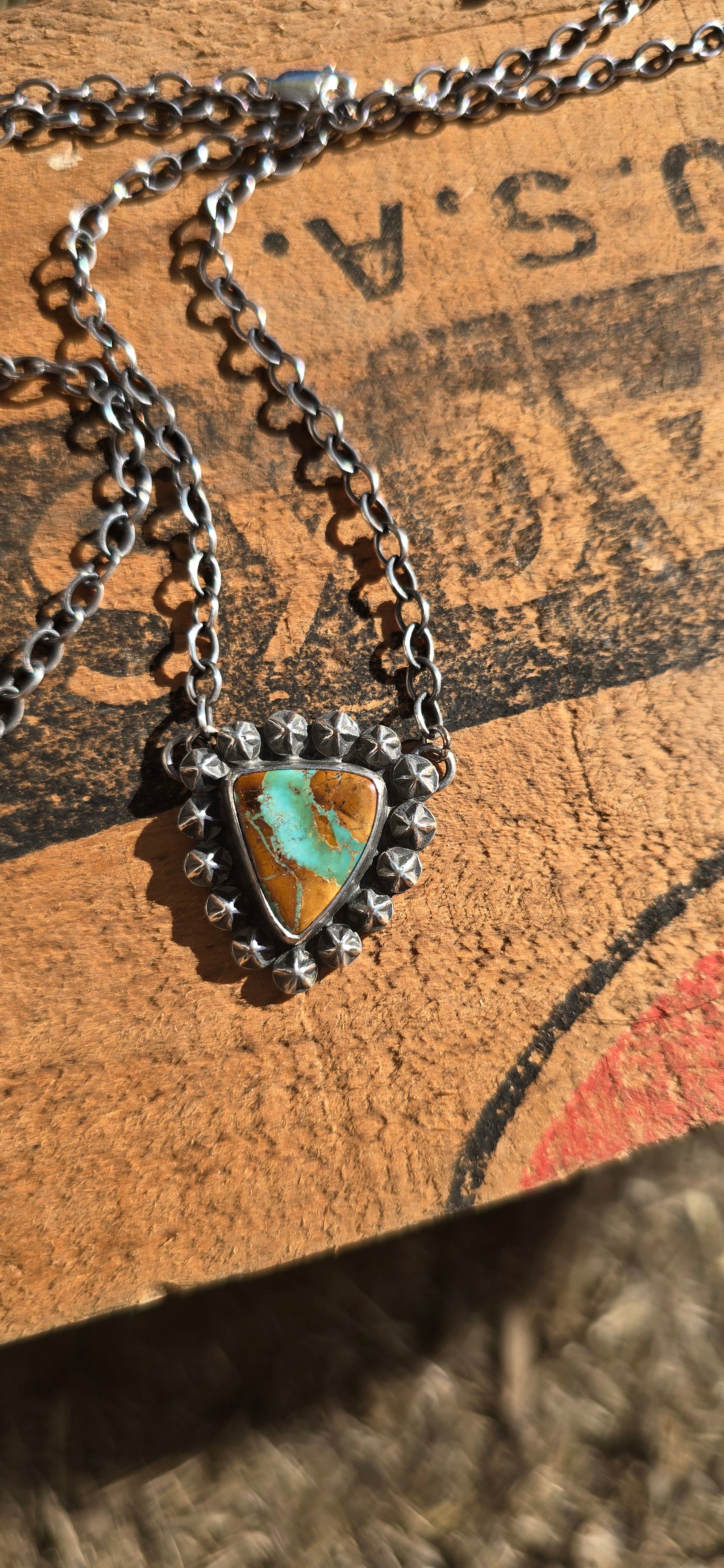 Beautiful high grade Royston Ribbon set in .999 Fine and .925 Sterling Silver on a 16" Sterling Silver cable chain. Each star embellishment is handmade by me out of of 100% recycled Sterling Silver.